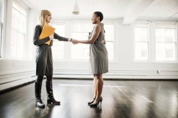 A real estate agent and a client shake hands