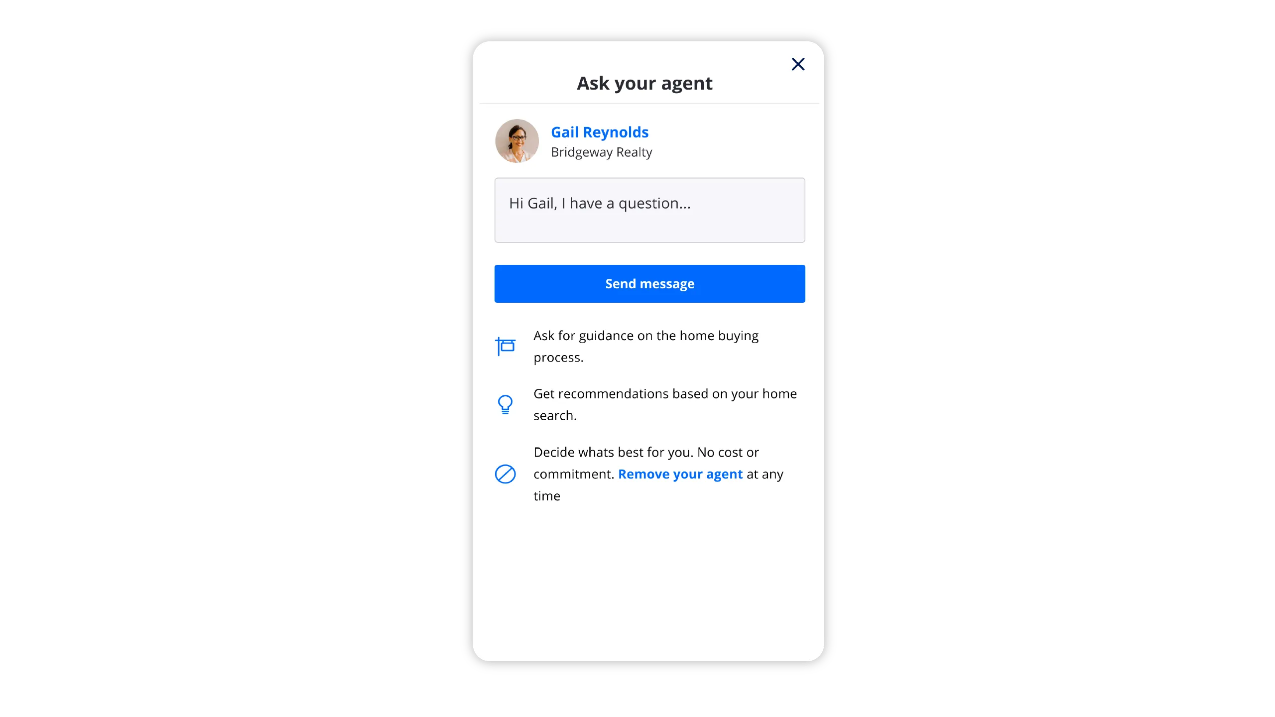 Exclusive presence on property pages: You become the only buyer's agent visible on the listings your clients view on Trulia or Zillow. This exclusive branding does more than remind them that you’re working together; your clients can also send messages directly from those pages to your Zillow Premier Agent inbox so they can easily tell you about listings they love or want to see in person.
