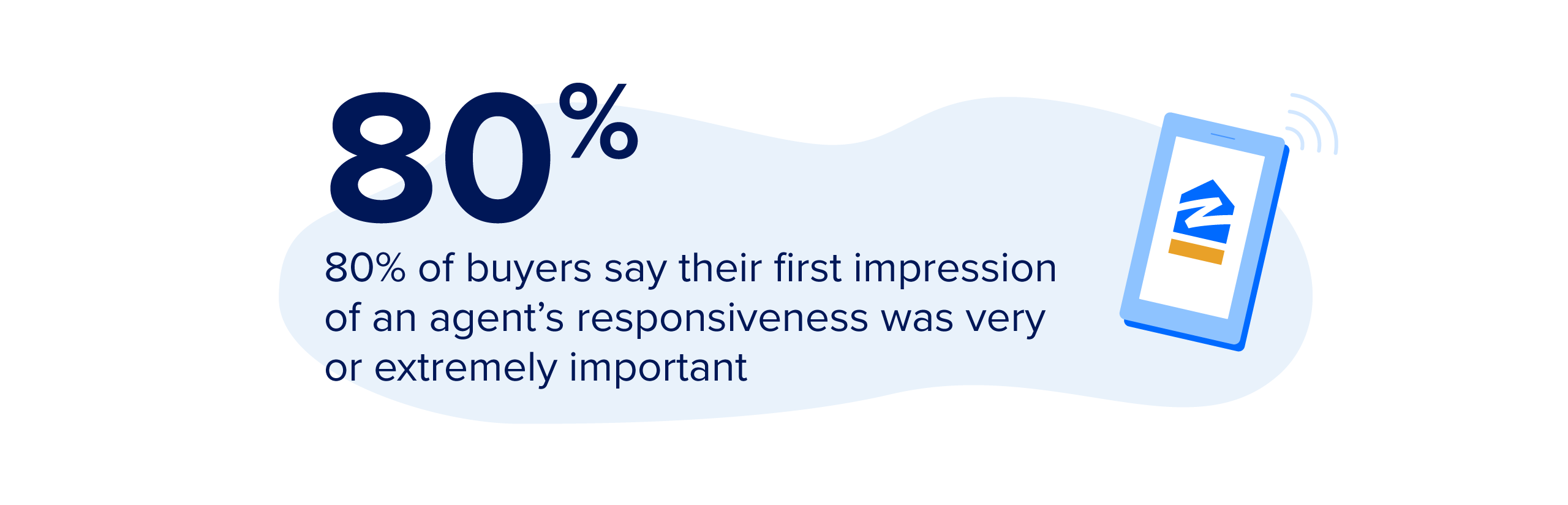 - Be responsive — 80% of home buyers who bought within the last year say their first impression of an agent’s responsiveness was very or extremely important.¹ When you receive a direct contact, text them within two minutes to let them know you saw their message. To get alerted instantly when we deliver a new lead, be sure to enable push notifications on your mobile device.