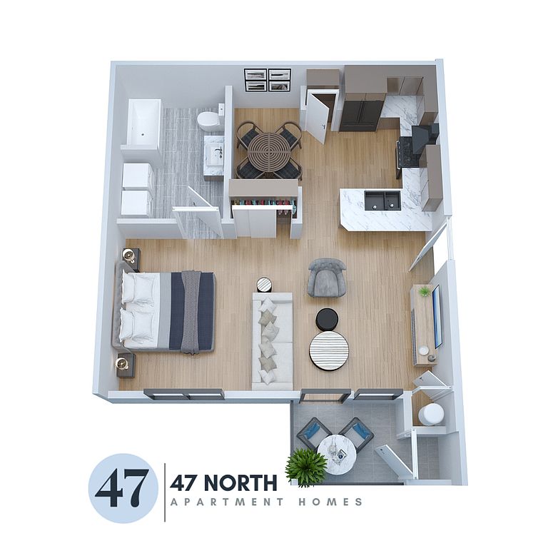 47 North Apartments has a walk score of 16, it's car-dependent.