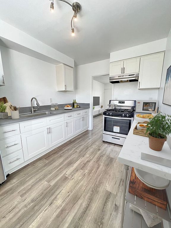 Custom laminate flooringQuartz countertopsDining areaDesigner-style kitchenHigh-end finishesLaundry on premises