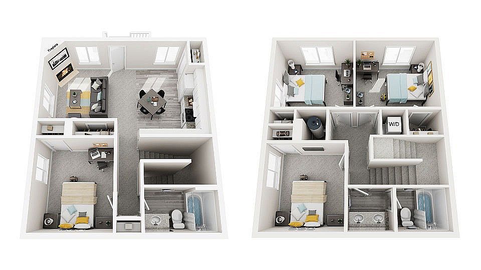 No, but The Social West Ames has shared building laundry and washer/dryer hookups available.