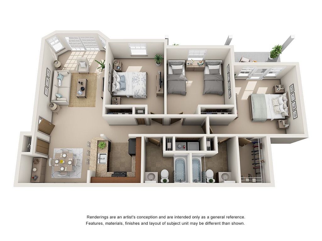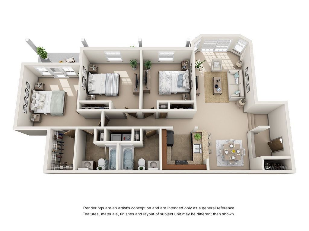 - Patio: Private Patios (3 & 4 Bedroom Apartments)