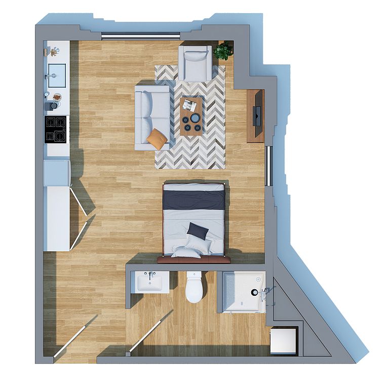 Studio-1 bed