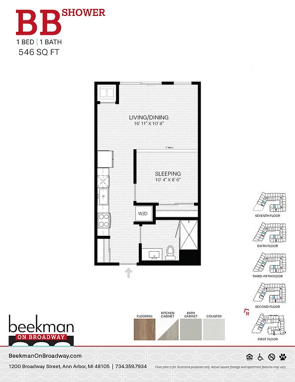 - B Floor Plan (1-bedroom)