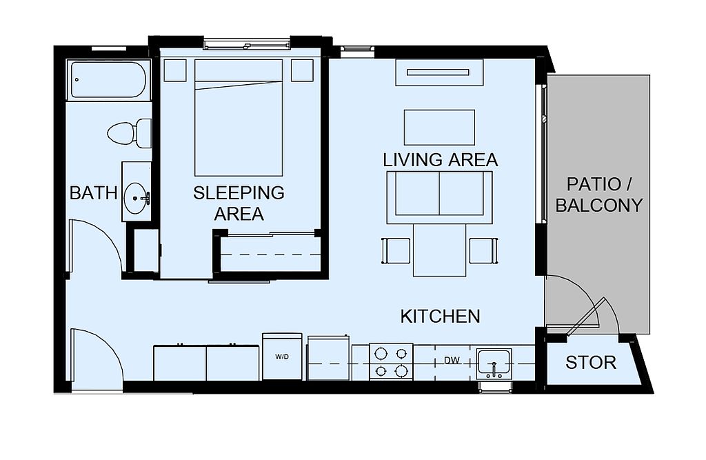 - Private Porch, Vaulted Ceilings, Energy-efficient Appliances, European-style Cabinetry, Storage.