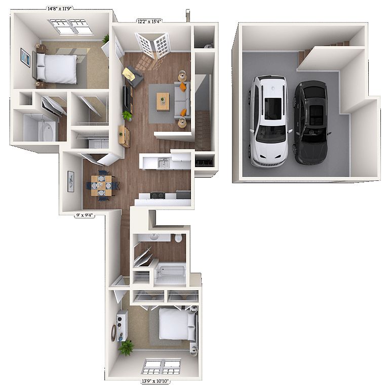 Spacious and open apartmentsLighted tennis courtsAttached garagesSparkling swimming pool