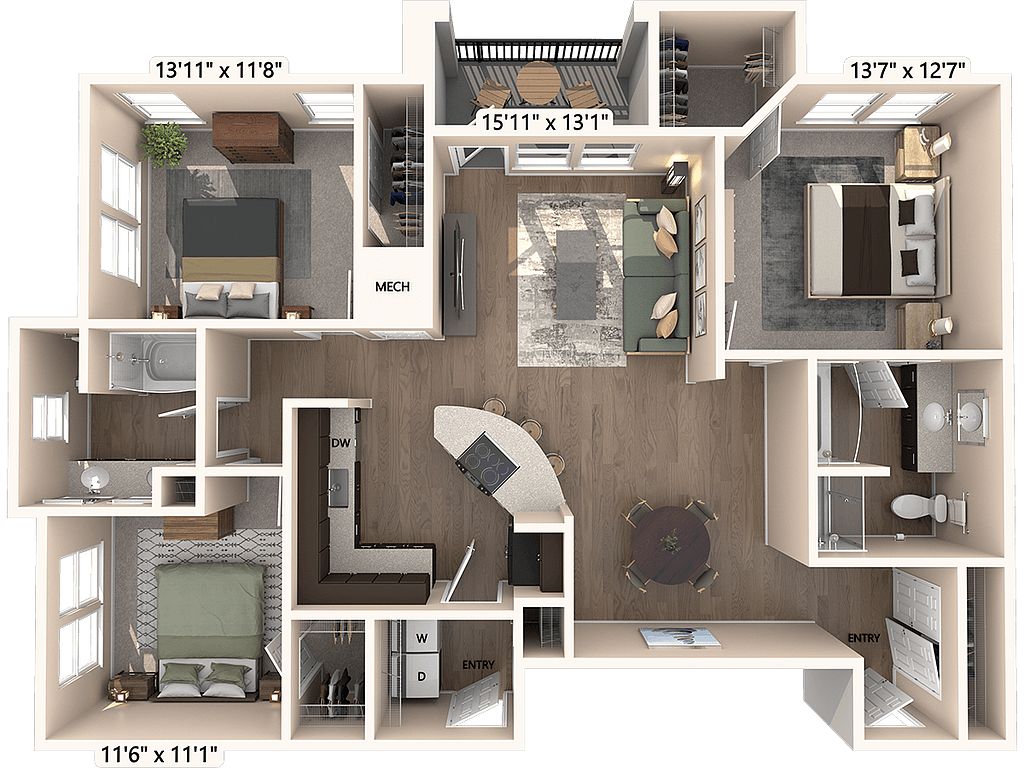 B3-1-1079 2 bd, 2 ba | 1,079 | Now | $1,443+ |