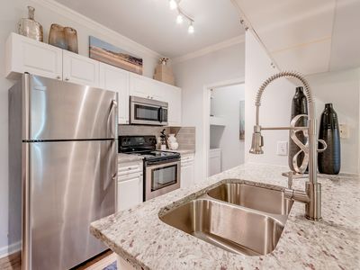 Separate laundry nookPrivate patioFireplace with built-in shelvesPlenty of closet spaceStainless steel appliances
