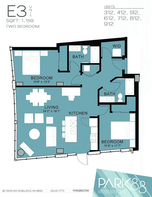 501 1 bd, 1 ba | 676 | Now | $2,999 |