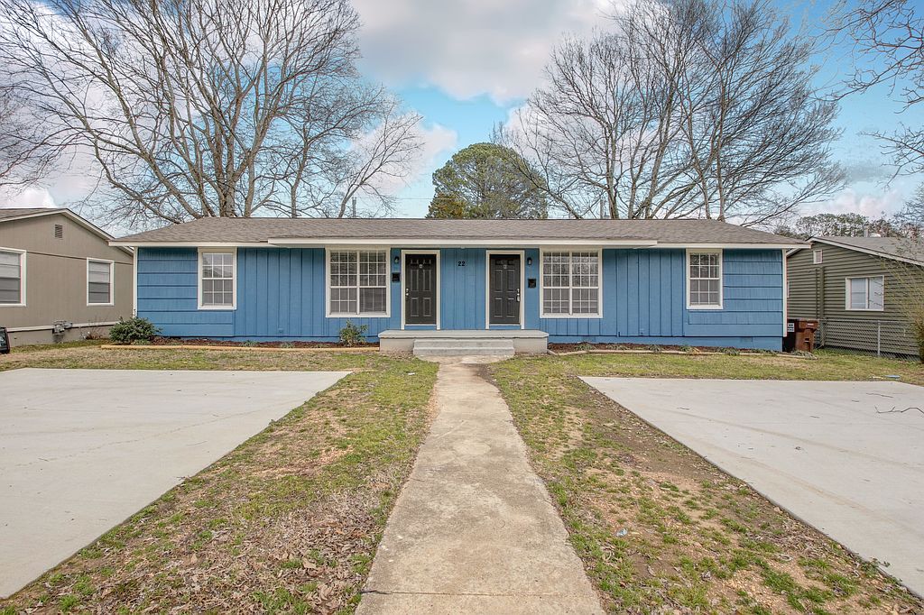 Step into this inviting 2-bedroom, 1-bath duplex that combines comfort, style, and functionality. The home features a cheerful bright blue exterior, setting a welcoming tone before you even walk in. Inside, enjoy low-maintenance wood-style vinyl flooring throughout the main living areas, with cozy carpet in the bedrooms for added warmth.