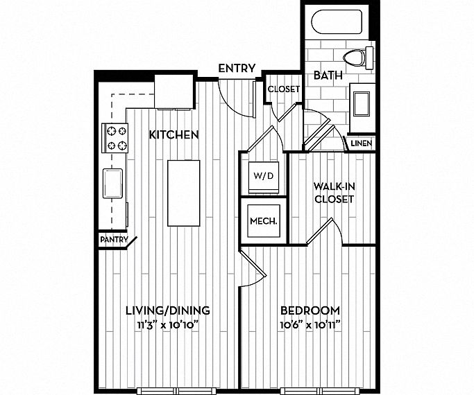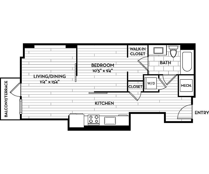 - 01S1B | Studio / 1 Bath | 642 SF