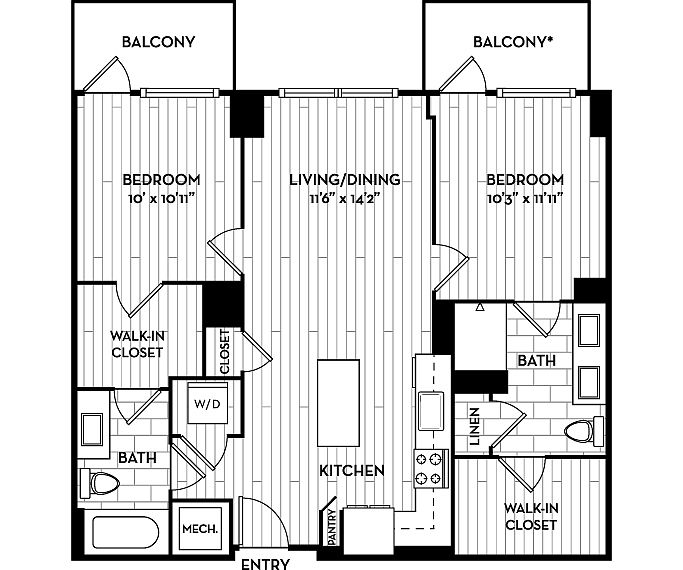 - 22F1B | 2 Beds / 2 Baths | 952 SF