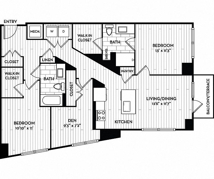 - 11S1B | 1 Bed / 1 Bath + Den | 759 SF