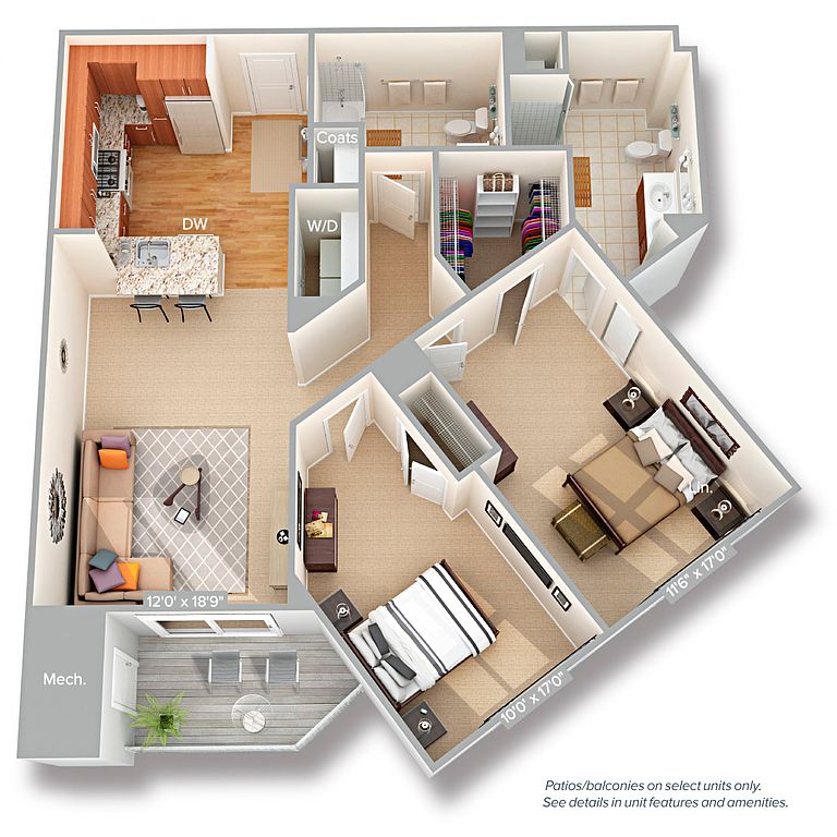 Spacious walk-in closetsStainless steel appliancesGranite countertops