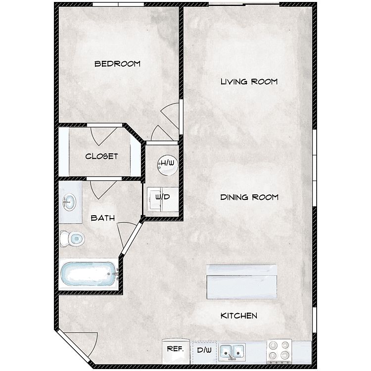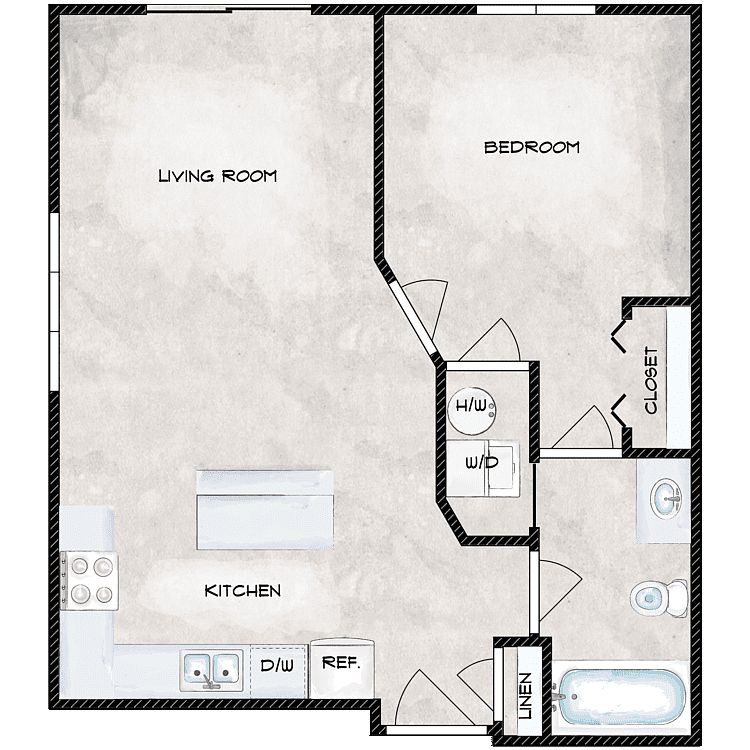 At Smith Flats, we offer 20 one-bedroom apartments for rent, each available in one of eight thoughtfully designed floor plans. Take advantage of the comfort, style, and convenience we offer. Every home features quality finishes, hard-surface flooring, and top-of-the-line stainless steel GE appliances, perfect for creating tasty meals. Our carefully crafted apartments provide the ideal space to balance work, school, and free time.