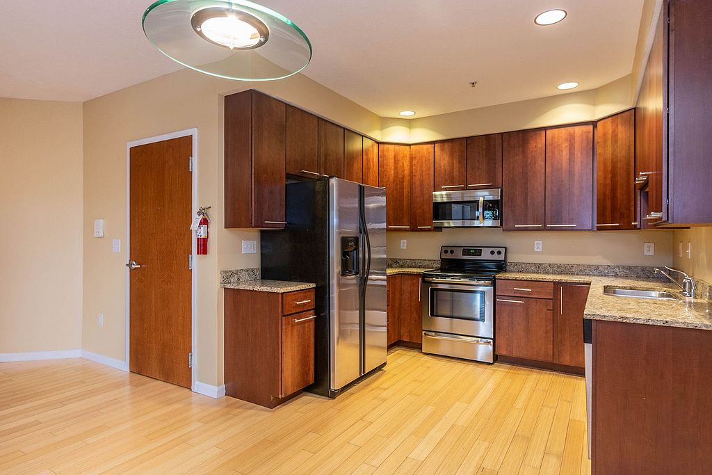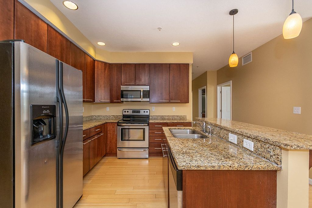 Bamboo flooringTiled bathroomsStainless appliancesGranite countertopsCarpeted bedroomsHigh ceilings