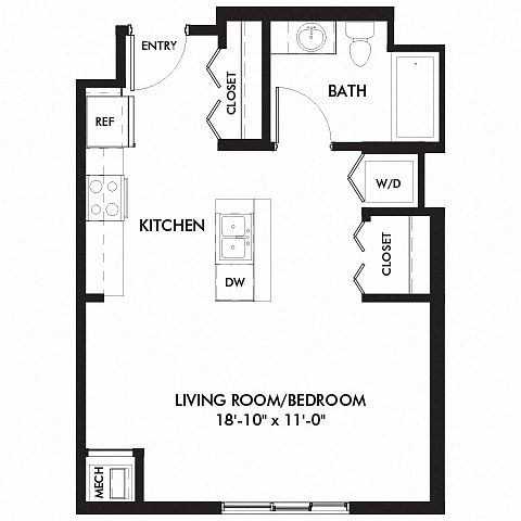 Studio 1 ba482 sqft