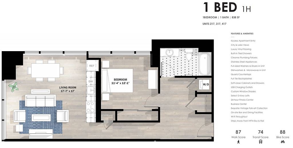 We offer unmatched amenities including a complete fitness center + crossfit gym, landscaped courtyard, Wi-Fi in public areas, a pet-friendly environment, and regular programming for all tenants of Seneca One. All of this is right above first-floor restaurants with a world-class technology hub down below. Come home to Seneca One where the endless possibilities of the city are right at your door.