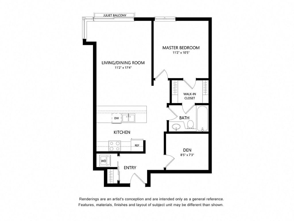 - Open concept 1 bedroom, 1 bedroom plus den, and 2 bedroom floor plans