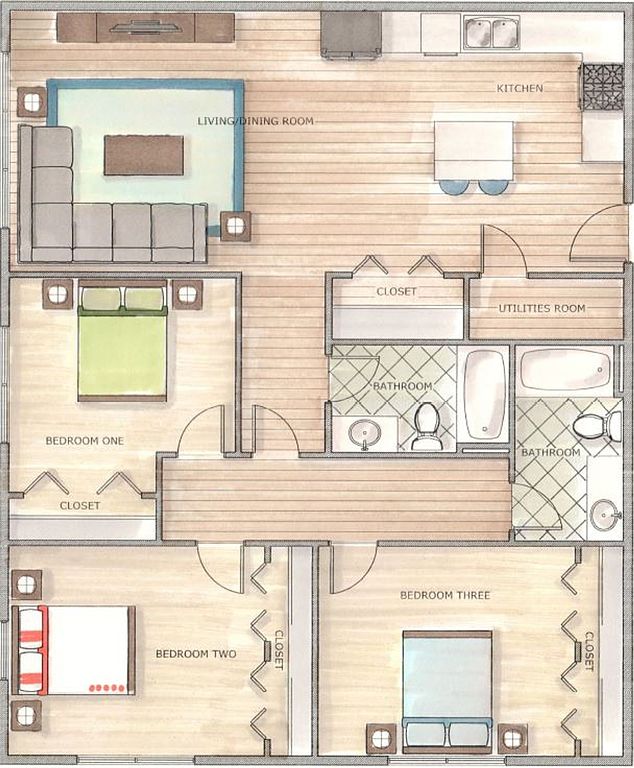 Slate finished appliancesSoft close cabinetryHardwood flooringSpacious bedrooms