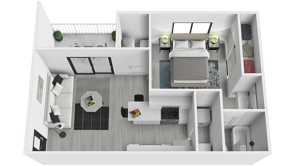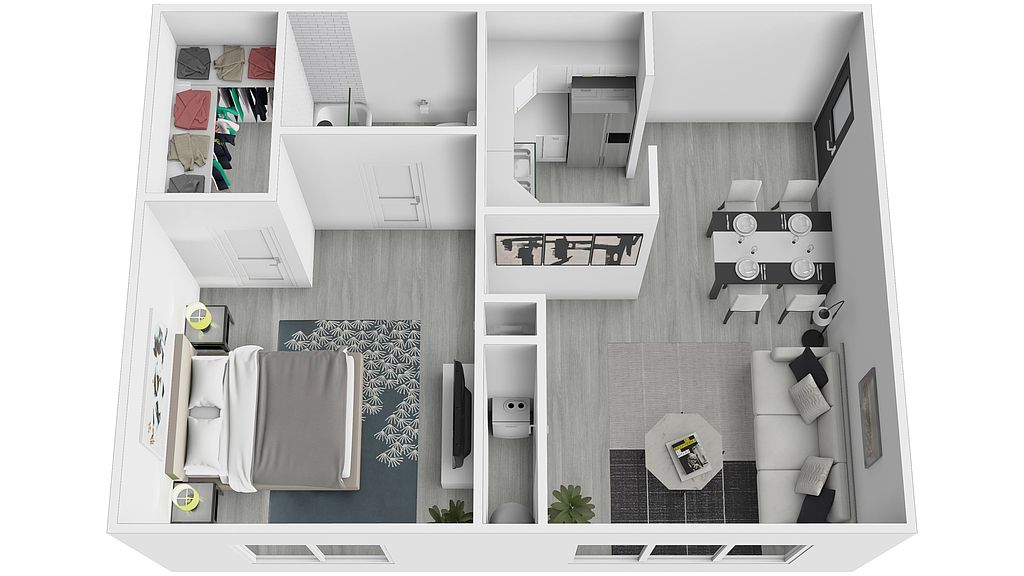 Clubhouse with coffee barFitness centerSwimming poolCommunity green spacesIn-unit washer and dryers