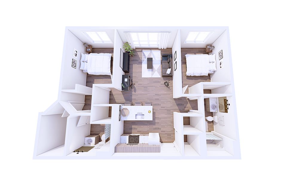 In-unit washer and dryerQuartz countertopsModern lightingNine-foot ceilings