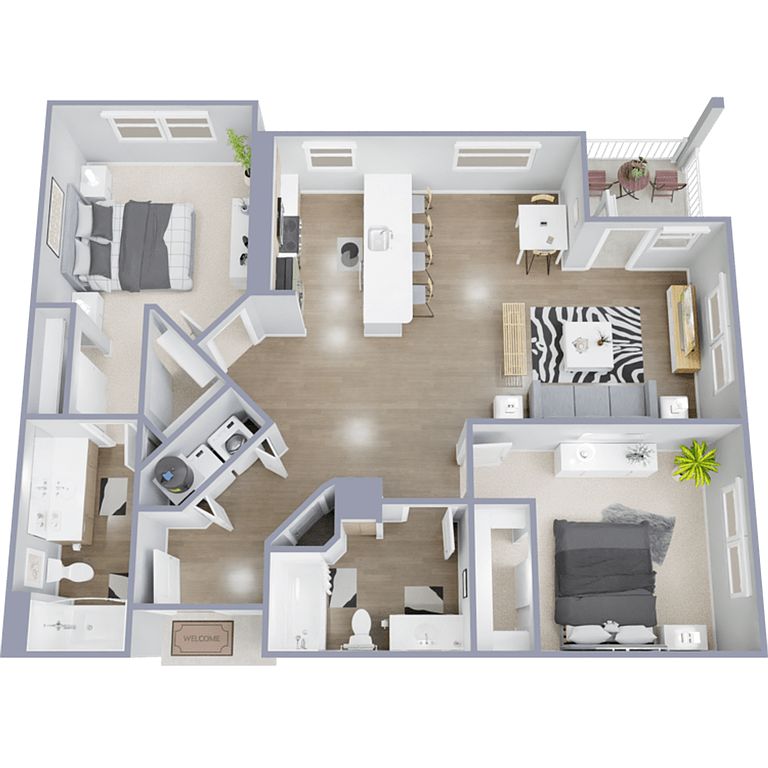 In-unit washer and dryerElegant hardwood floorsBalconies and patios
