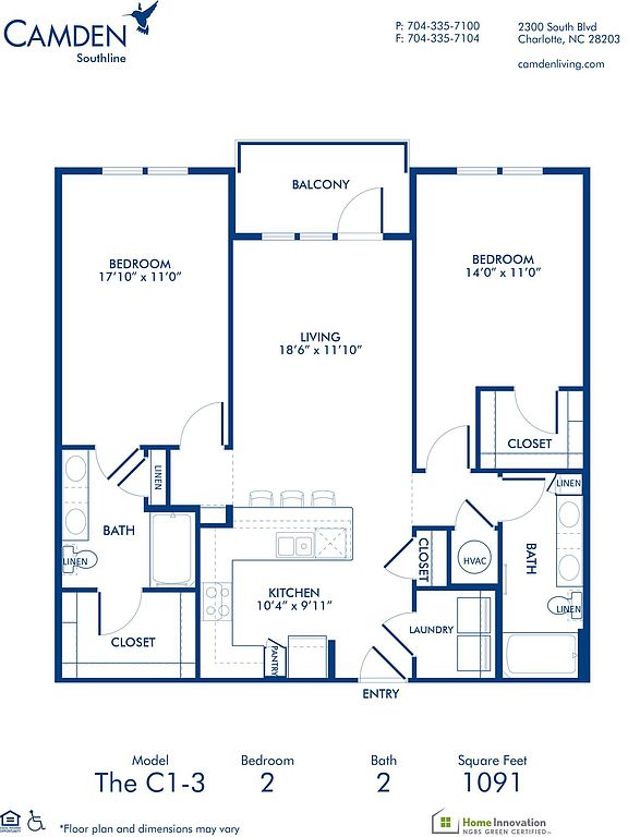 Camden Southline is in the Brookhill neighborhood in Charlotte, NC.