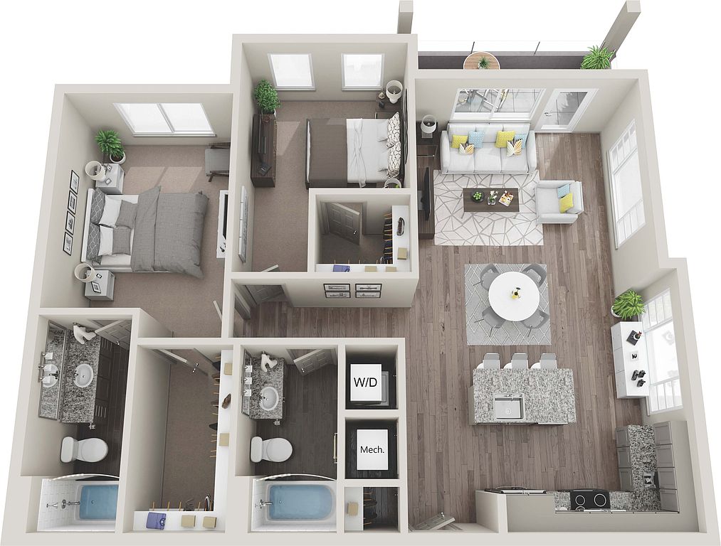 - Limited time: One month free base rent on all 2 bedroom apartments!