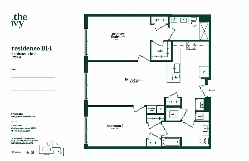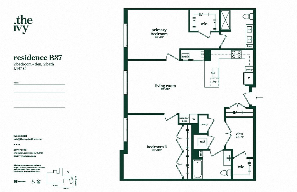Refined yet welcoming, The Ivy Apartments introduces resort-style living to the quaint and historic town of Chatham, NJ. Our apartments offer over 34,000 square feet of exciting amenity spaces that blur the line between indoor and outdoor living. And with tree-lined streets, local boutiques, vibrant dining spots, and effortless connectivity to New York, our community truly has it all.Our one, two, and two-bedroom plus den homes are as spacious as they are stylish. Soaring nine to eleven-foot ceilings, luxury plank floors, and quartz countertops create a sophisticated ambiance to return to. Shaker vanities, linen storage, and custom wine storage are part of all our apartments in Chatham, NJ, with a select few also boasting wine bars, dens, and elegant kitchen islands.