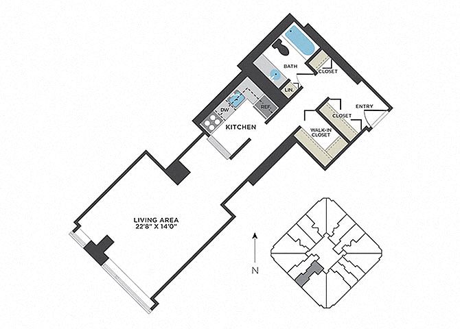This building features access to a pool. Less than 4% of buildings in Chicago have this amenity.