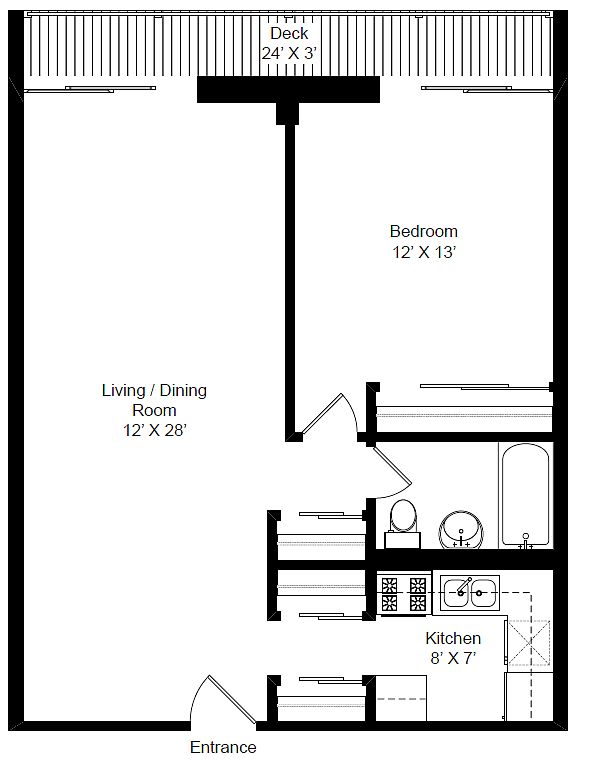 Other common area features include: a fitness center, bike storage and laundry facilities.