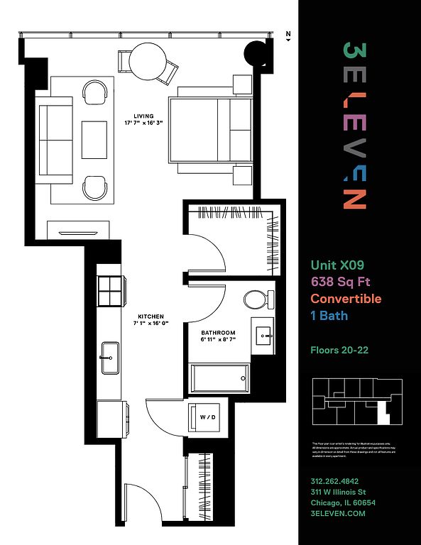 3Eleven is the ultimate destination for those seeking a vibrant lifestyle in the heart of River North. This stunning addition to the neighborhood offers thoughtfully designed open-concept living spaces that perfectly blend work and leisure.