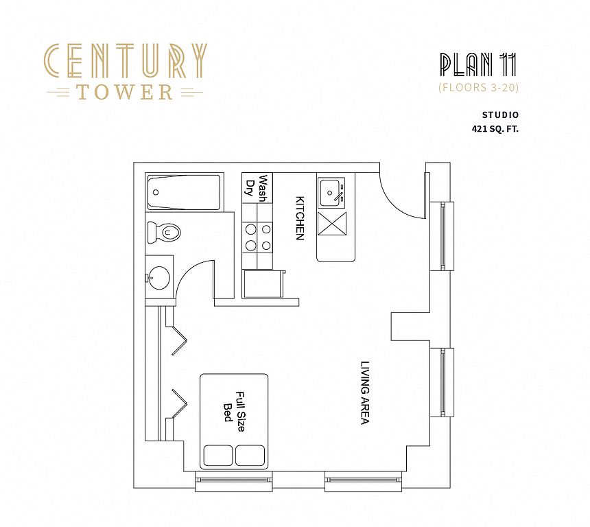 Yes, Century Tower has in-unit laundry for some or all of the units. Century Tower also has shared building laundry.