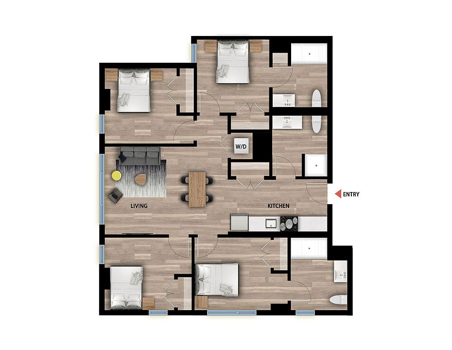 Outdoor terraceSpacious private apartmentsFully-furnished co-living suites