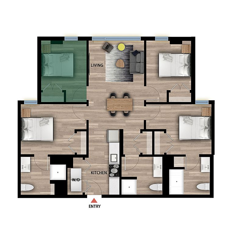 Outdoor terraceSpacious private apartmentsFully-furnished co-living suites