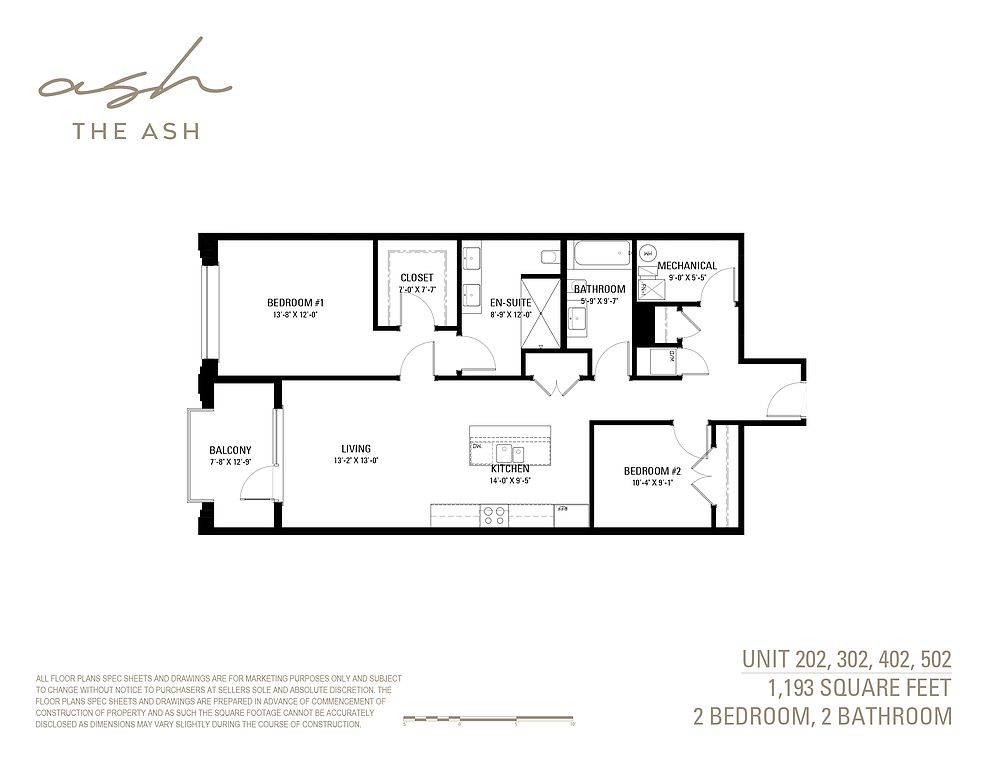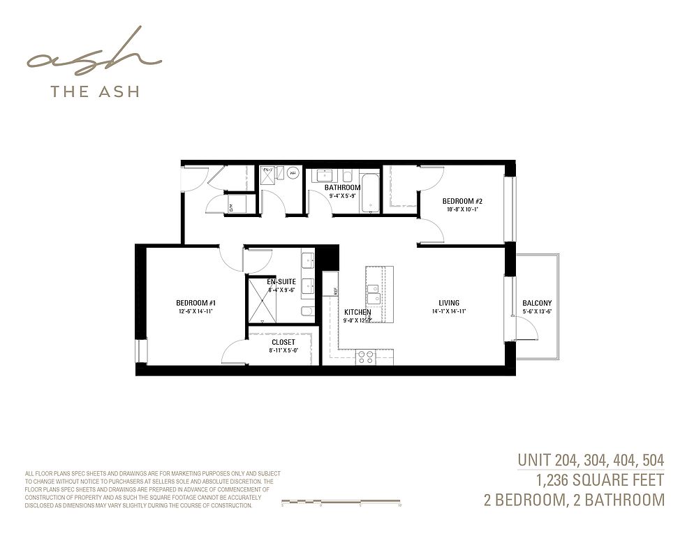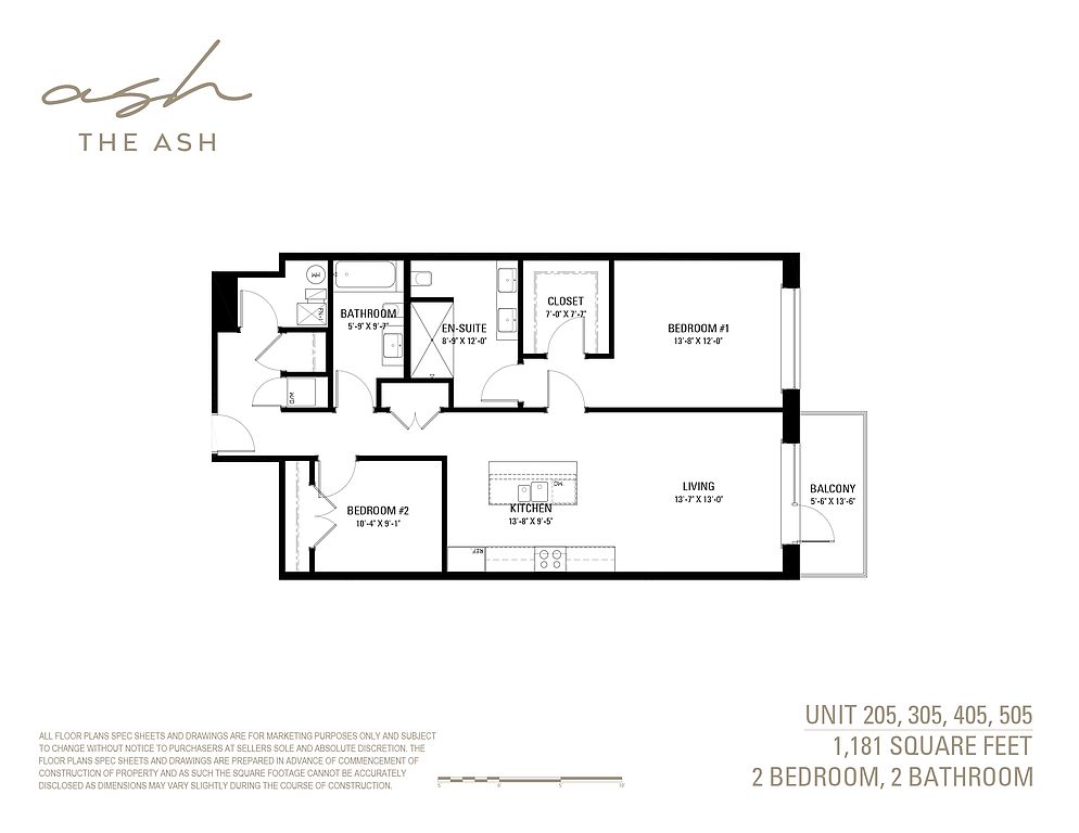 The Ash apartments provide a variety of 1 & 2 bedroom floor plans with ample living space throughout. Each apartment boasts high-ceilings, oversized windows for plenty of natural light, private walk-out balconies and in-unit laundry. The designer kitchens feature custom cabinetry with a full stainless-steel appliance suite, a large island for entertaining and an open concept flow into the living room that is centered by a modern built-in fireplace.