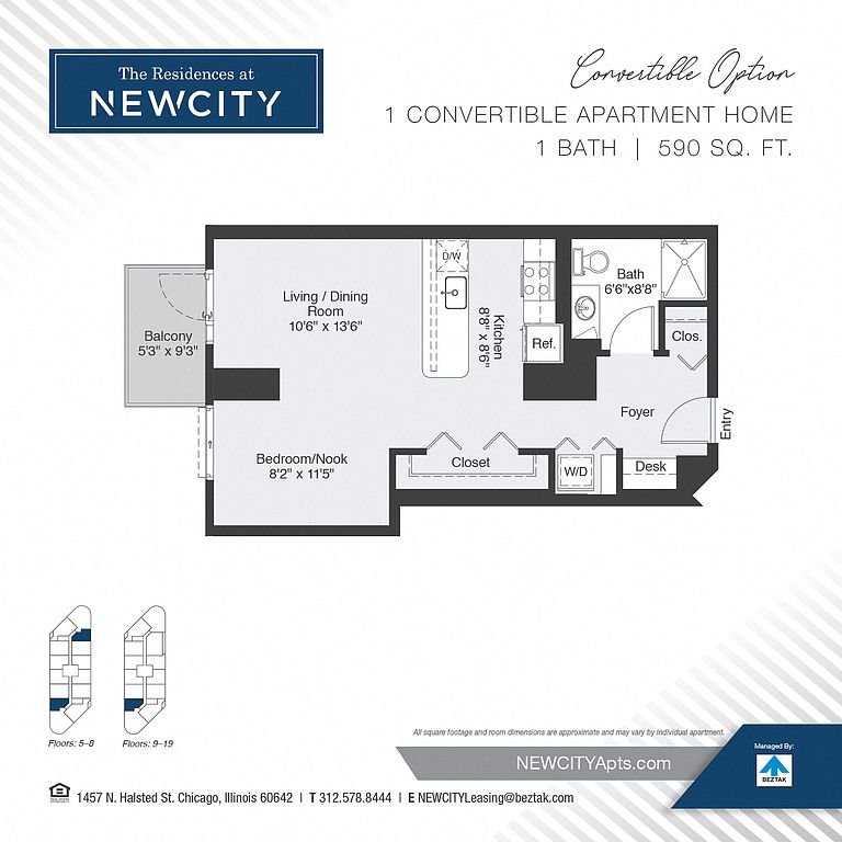 This property is managed by Beztak, 2024 recipient of the US Best Managed Companies for the fifth year in a row, sponsored by Deloitte Private and The Wall Street Journal. Call and let us tell you why! ENJOY THE LIFE OF LUXURY Located in Chicago, Illinois The Residences at NewCity offers studio, one-, and two- bedroom apartments and features a door attendant, covered parking, swimming pool with expansive sundeck, bike racks, BBQ/picnic area, and more!With convenient access to shopping, dining, and entertainment, The Residences at NewCity is the perfect place to call your new home! Virtual and Contact-Free Leasing and Move-In Available - Self-Guided Tours with Lockboxes- FaceTime/Skype Tours- Apply & Sign Online