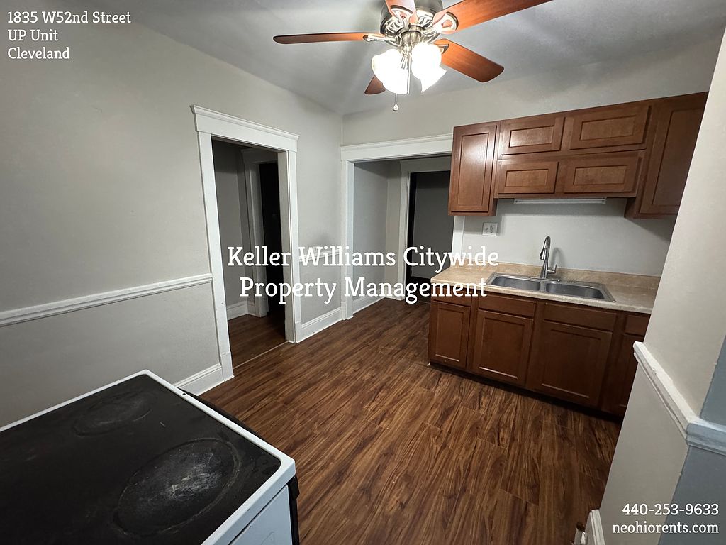 Welcome to this updated 2-bedroom, 1-bath upstairs unit located just minutes from Gordon Square, Ohio City, and downtown Cleveland. The home features resurfaced hardwood floors throughout the main living areas, spacious rooms, and large closets. A walk-up attic provides additional storage space, while the eat-in kitchen offers ample cabinetry, a stove, and a refrigerator. A private washer and dryer are included for your convenience.
