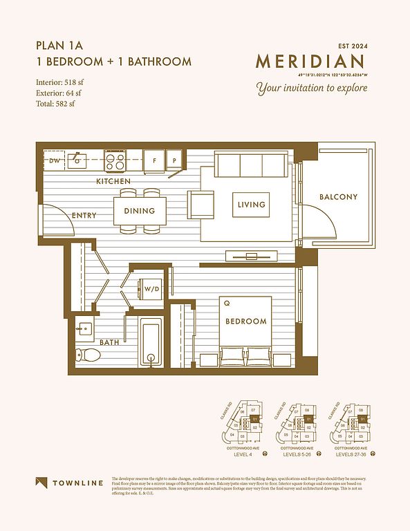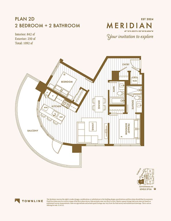 Inside the four walls of your home are modern kitchens you'll want to cook and entertain in: stainless-steel appliance package including range, hood fan, fridge, and dishwasher, polished Quartz countertops, design cabinetry with polished chrome plumbing fixtures. Forget pesky laundry hauls with in-suite laundry for stress-free cleaning. Take in Meridian's expansive views with a generous balcony for seamless indoor-outdoor living.