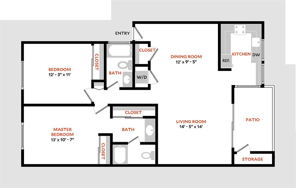 - Large Closets: Large walk-in closet