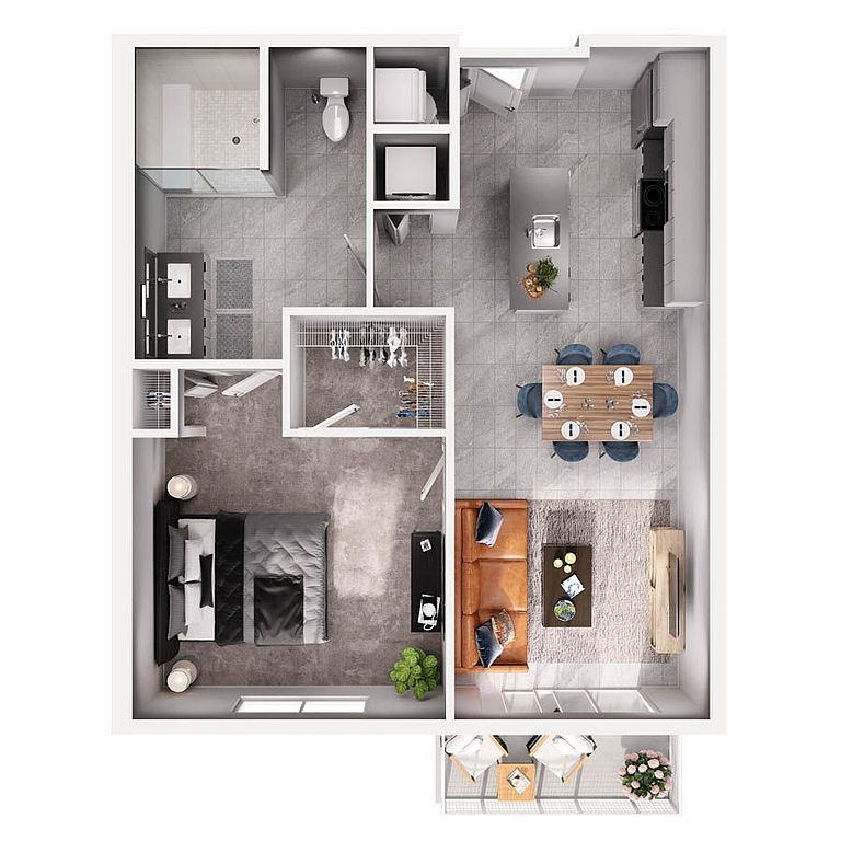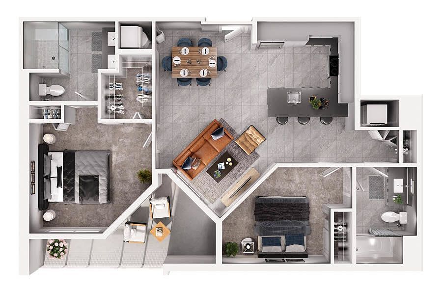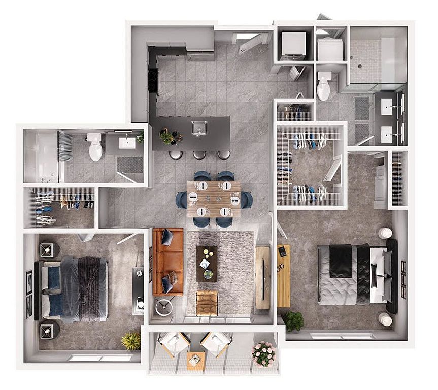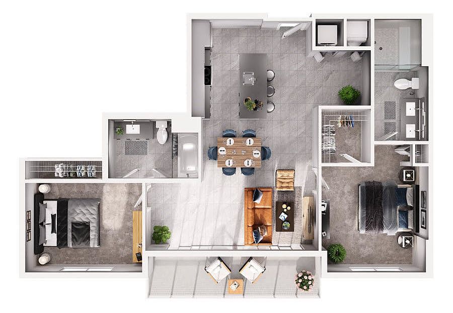 Large walk-in closetsDecked-out fitness studioWarm wood-style flooringSleek modern kitchensSmart-entry access