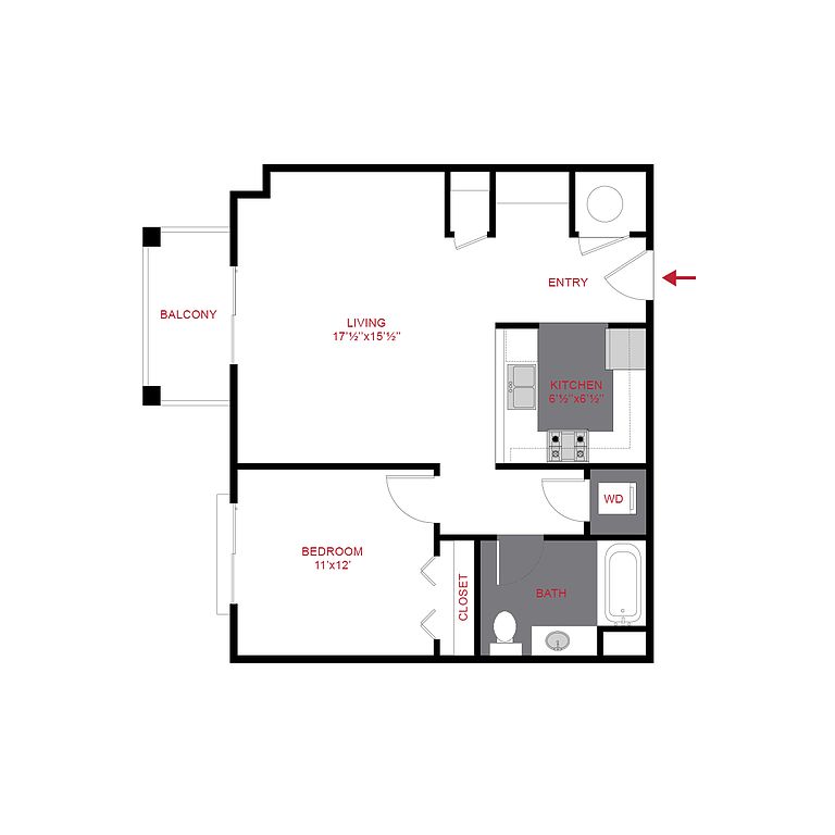 - A1 Floor Plan | 1 Bed 1 Bath | 703 sq ft