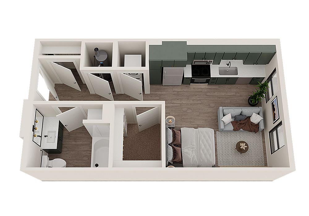 - Vinyl: Luxury Vinyl Flooring in Living Area & Bathrooms