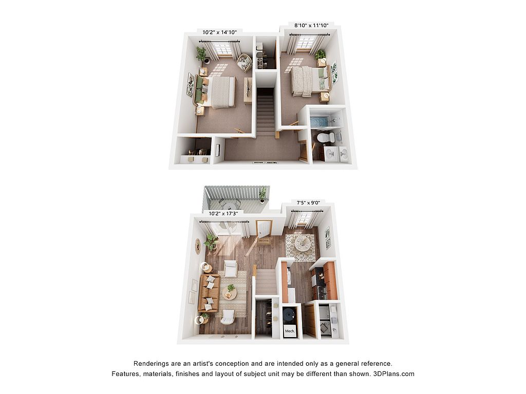 Copperleaf is a beautiful apartment community nestled in historic Dublin, Ohio, just a twenty-minute drive from downtown Columbus. Our apartments are 2-bedroom townhomes, comprised of spacious open floor plans and generous storage options.