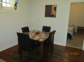 The outer area features a private, enclosed courtyard, "tiki-like" outdoor building/bar area, as well as a party room/garage! The garage area houses 2 half baths, a refrigerator, sink and microwave. This makes for the perfect entertaining spot in warm weather! Without a doubt, the most unique apartment we have offered to date! All utilities are also included!