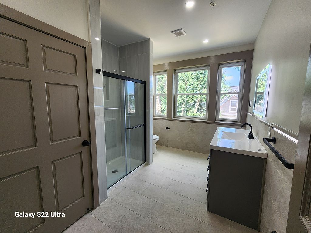 Tiled bathrooms with modern fixtures and special lighting for a spa-like feel