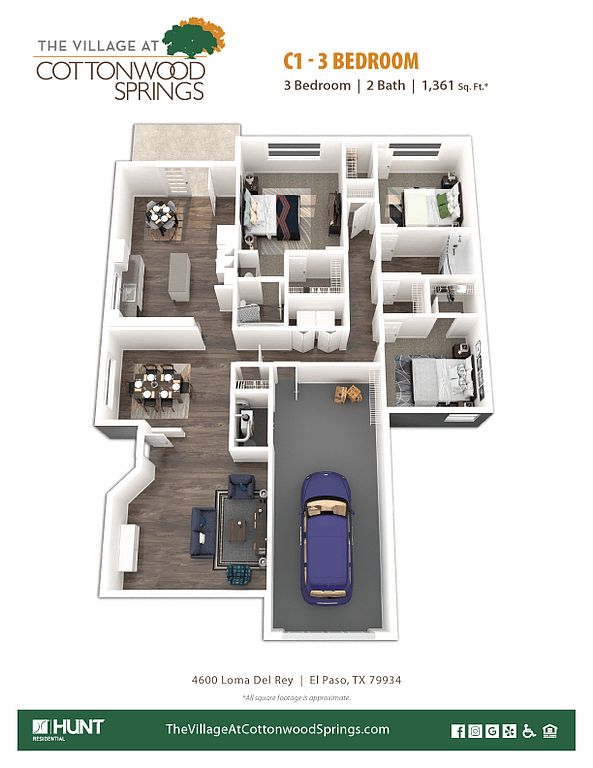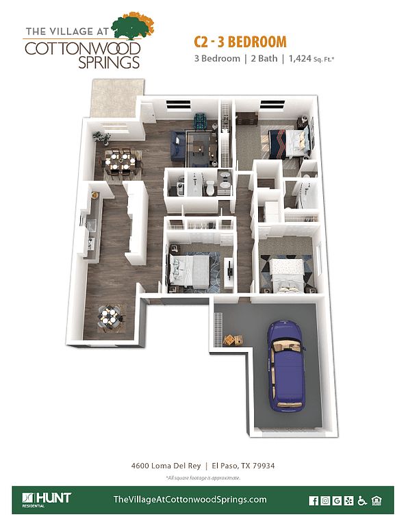 The Village at Cottonwood Springs is in the North Hills neighborhood in El Paso, TX.