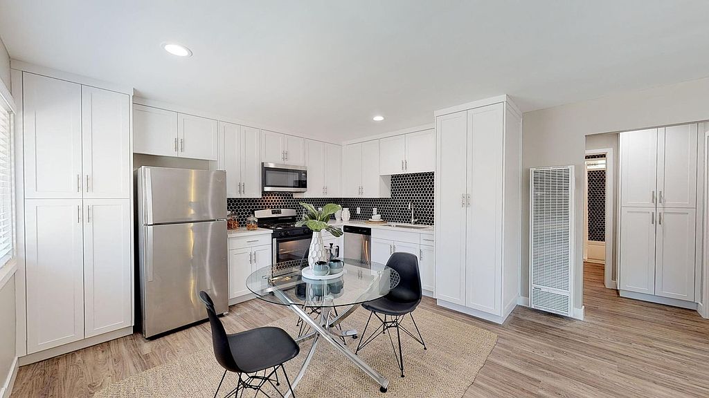 Quartz countertopsOpen concept living spaceOversized kitchen sinkWood-style flooringOff-street parkingStainless steel appliancesCustom paint